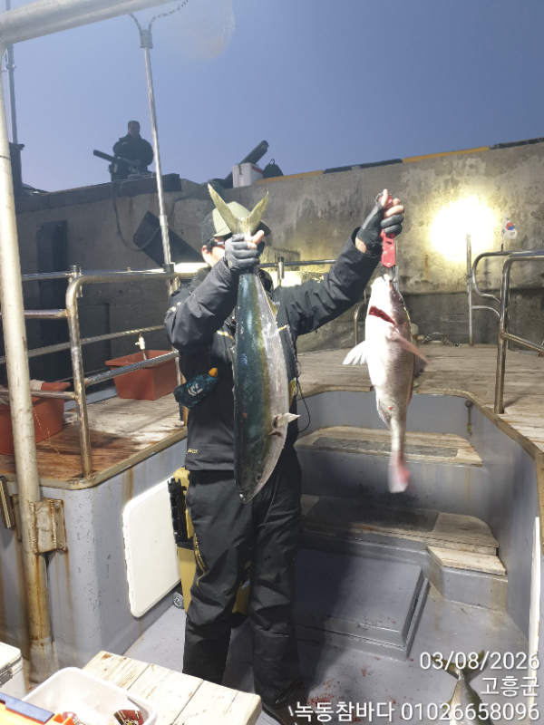 방어어군이 뜨자   지깅채비 한분만준비되어   8번히트에  감당되지않아서 터뜨리고  2마리 획득  ㅎ